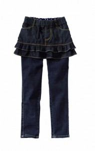 スキニーにフリルのスカートが付いたスカッツは女の子に人気のアイテム。動きやすいので、おしゃれと遊びの両方が楽しめる。