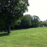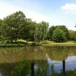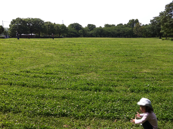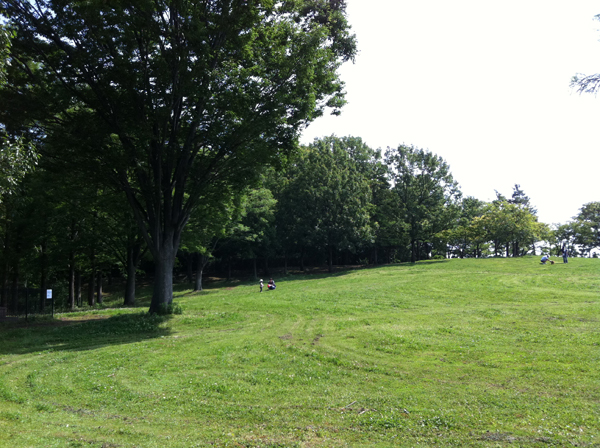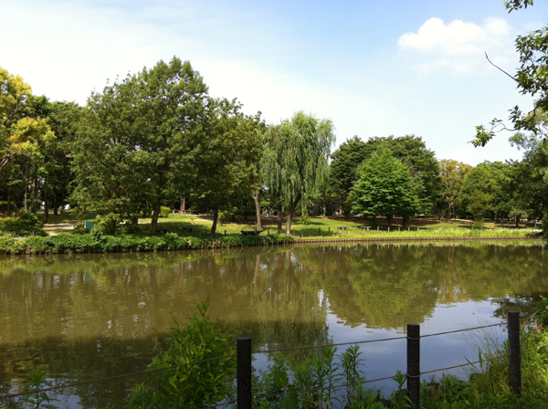自由広場・・・池に面した芝生の広場。休日には、レジャーシートを広げてのんびりと過ごす家族連れが多い。