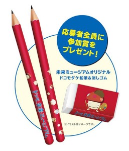 今年は、応募した方への参加賞として「ドコモ未来ミュージアムオリジナルドコモダケ鉛筆&消しゴムセット」がもれなくプレゼントされる。